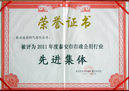 2011年度泰安市市政公用行業(yè)先進(jìn)集體