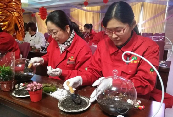 活動(dòng)邀請(qǐng)了“玲瓏花藝”的培訓(xùn)師進(jìn)行現(xiàn)場(chǎng)微景觀花藝制作及講解。老師憑借深厚的花藝底蘊(yùn)以及多年的制作經(jīng)驗(yàn),首先從花材知識(shí)和插花技巧等方面,生動(dòng)形象地給大家普及了理論知識(shí)。之后,花藝?yán)蠋煼植襟E進(jìn)行示范、指導(dǎo),女職工親手嘗試制作微景觀制作,收獲了一份美好的心情。