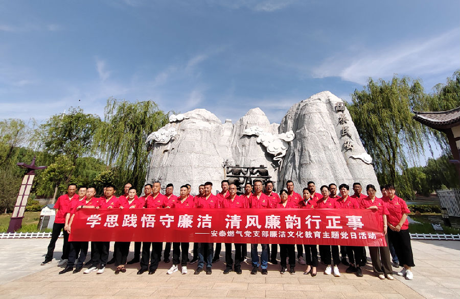 為深入貫徹落實上級黨委關(guān)于中央八項規(guī)定精神學習教育及廉潔教育工作要求,6月10日,泰安安泰燃氣有限公司黨支部組織領(lǐng)導班子成員、中層以上管理人員、黨員及業(yè)務(wù)骨干赴泰山天平湖廉潔文化現(xiàn)場教學點,開展“學思踐悟守廉潔,清風廉韻行正事”主題黨日活動。