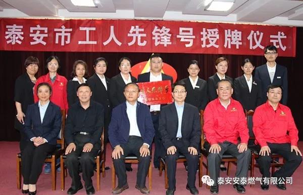 2018年4月28日上午,“泰安市工人先鋒號”授牌儀式在安泰燃?xì)夤救龢菚h室舉行。泰安市總工會常務(wù)副主席鞏華仁、副主席陳長舉、生產(chǎn)部部長王蕾、泰山玻纖副總經(jīng)理、安泰燃?xì)舛麻L趙恒剛、泰山玻纖工會主席王吉俊、工會副主席趙麗出席此次授牌儀式。安泰燃?xì)馊w管理人員以及所有不當(dāng)班員工參加了授牌儀式。儀式由安泰燃?xì)恻h支部書記、常務(wù)副總佟慶主持。
