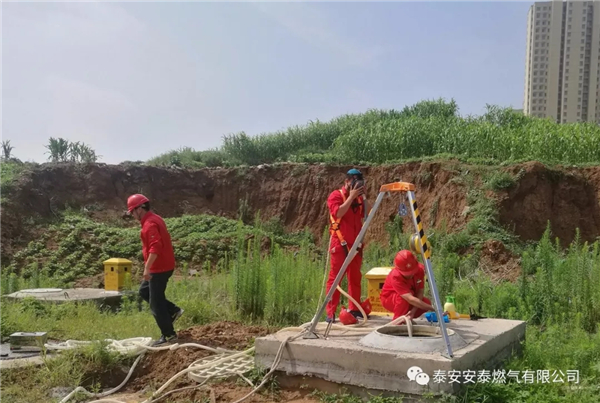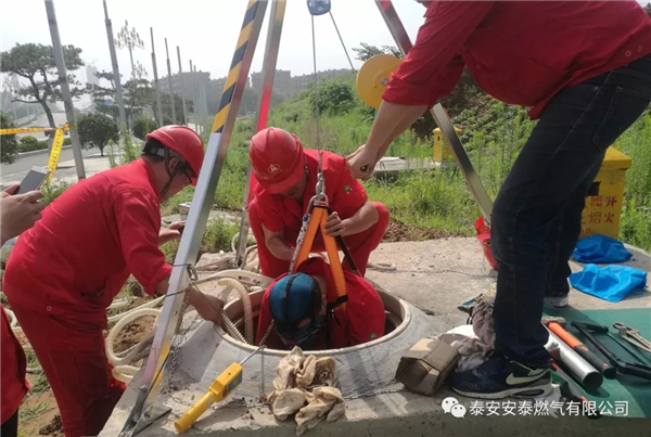 為加強(qiáng)燃?xì)庠O(shè)施突發(fā)事件應(yīng)急反應(yīng)能力和事故處置能力,檢驗(yàn)安泰燃?xì)鈸屝揸?duì)伍業(yè)務(wù)水平,查找應(yīng)急機(jī)制與救援裝備目前存在的問題,有效防范和遏制燃?xì)馐鹿实陌l(fā)生,2018年6月27日,泰山玻纖副總經(jīng)理、安泰燃?xì)舛麻L趙恒剛在“不提前告知”、“搶險人員沒有提前準(zhǔn)備”的情況下,驅(qū)車趕到天平湖路閥門井,現(xiàn)場突擊啟動沿線閥門井燃?xì)庑孤┡c人員窒息應(yīng)急搶險救援演練。趙恒剛到達(dá)現(xiàn)場后立即撥打安泰燃?xì)夤芫W(wǎng)部部長劉龍華電話,通知進(jìn)行燃?xì)鈸岆U與受限空間應(yīng)急預(yù)案演練,宣布天平湖路與粥頂山路交叉口東面方向DN200天然氣閥門井內(nèi)燃?xì)庑孤?,演?xí)正式開始。