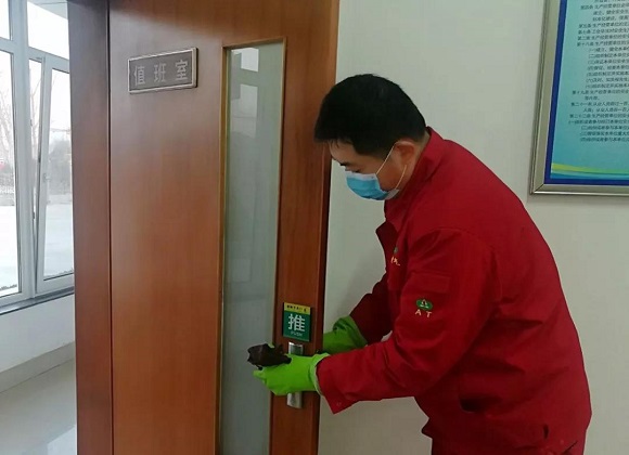 泰山玻纖黨委委員、副總經(jīng)理、工會主席、安泰燃?xì)舛麻L趙恒剛多次帶領(lǐng)疫情應(yīng)急領(lǐng)導(dǎo)小組對站區(qū)、客戶服務(wù)大廳等進行疫情防控落實情況檢查,并為各崗位送去測溫槍、8.4消毒液、口罩等相關(guān)防疫物資。在現(xiàn)場,趙恒剛仔細(xì)測試防疫物資性能、檢查相關(guān)物資使用情況。他告訴值班人員,目前公司未出現(xiàn)與疫病人員接觸的情況、未有感染疫病情況,但防疫工作仍不能有半點馬虎。公司為繼續(xù)保障員工身體健康、確保零交叉感染,對近期出入過疫情小區(qū)的員工以及春節(jié)期間外出過的員工進行了隔離觀察。他希望在隔離比例較大的情況下,值班人員勇于發(fā)揚“挑山工”精神,做好個人防護工作的同時,要全力確保場站正常的運營維護,確保為用戶提供安全、優(yōu)質(zhì)的服務(wù),履行好社會責(zé)任擔(dān)當(dāng)。值班人員紛紛表示,將不斷提高站位,與公司一道共克時艱,打好防疫攻堅戰(zhàn),全力保障燃?xì)獍踩?yīng)。