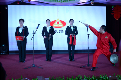 聯(lián)合會以熱情奔放的舞蹈《相親相愛》拉開了帷幕;以“和諧·平安·共創(chuàng)美好未來”為主旋律,將安泰燃氣全員的日常工作和生活與公司以人為本的發(fā)展理念緊密聯(lián)系起來,用歡快愉悅的藝術形式展現(xiàn)了安泰燃氣全員陽光向上、積極進取的精神風貌。安泰員工精心編排的紅歌大合唱《四渡赤水出奇兵》、《山丹丹開花紅艷艷》讓觀眾重溫了紅軍長征的革命壯舉,銘記長征精神的高尚品德,合唱團的精彩表演,更是博得觀眾陣陣掌聲;獨具匠心的音樂快板《安泰贊》表達了員工對公司的熱愛之情;客服部的小品《收費大廳的故事》,把燃氣公司日常面向用戶的服務工作標準與現(xiàn)實問題巧妙結合,妙趣橫生,引發(fā)現(xiàn)場陣陣歡笑,更是把晚會氣氛推向高潮。整場聯(lián)歡會內容豐富,唱歌、相聲、三句半、音樂快板等形式多樣,充分體現(xiàn)出領導與員工其樂融融的歡慶場面。