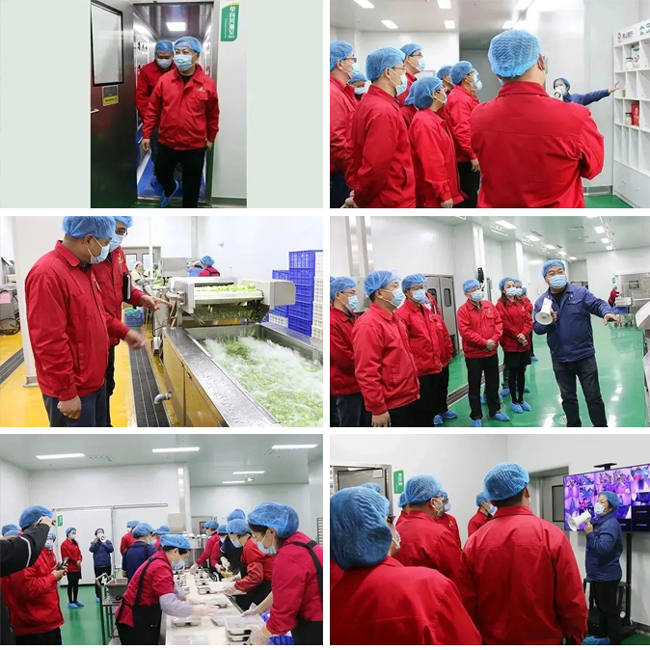 首先,一行人統(tǒng)一換上頭套、鞋套進(jìn)入“風(fēng)淋室”清潔,隨后在食堂工作人員的帶領(lǐng)下依次進(jìn)入中央廚房配餐中心。參觀中大家了解到,配餐中心所有食材均遵循“食以安為天”的原則,建立了嚴(yán)格的食品安全管控體系,統(tǒng)一招標(biāo)采購、統(tǒng)一管理、統(tǒng)一配制,保障了制作、配餐的可追溯性。新的中央廚房生產(chǎn)線采用多種先進(jìn)生產(chǎn)設(shè)備,可實現(xiàn)原料入庫、加工、包裝、儲存、配送全程實時監(jiān)控、批批檢測,從而確保產(chǎn)品質(zhì)量和口感。全新的配餐系統(tǒng)和高標(biāo)準(zhǔn)的加工配送體系,無不體現(xiàn)出硬件上選型上的“高精尖”和服務(wù)著陸上的“軟實力”,讓大家親眼見識到食品生產(chǎn)標(biāo)準(zhǔn)化流程的同時,開闊了眼界,也從中深刻體會到“盡心盡力、盡職盡責(zé)”的深刻含義。