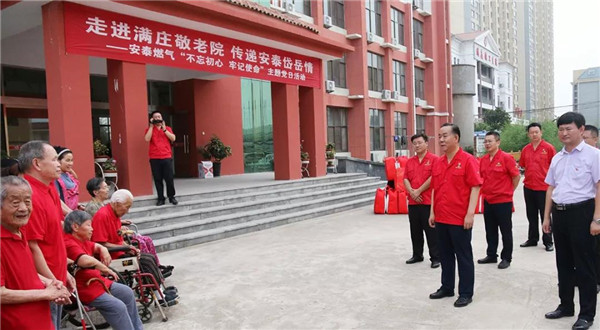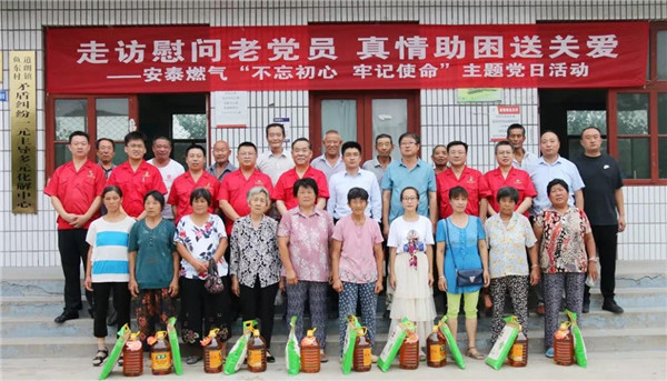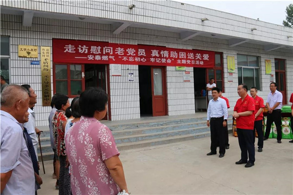 7月25日,泰安安泰燃?xì)庥邢薰鹃_展“不忘初心送關(guān)愛 組織關(guān)懷暖人心”主題黨日活動。泰山玻纖黨委委員、副總經(jīng)理、安泰燃?xì)舛麻L趙恒剛帶領(lǐng)公司班子成員、支部委員、黨員骨干分別走進(jìn)滿莊鎮(zhèn)敬老院和道朗鎮(zhèn)魚東村,以實(shí)際行動向退伍老黨員做出的貢獻(xiàn)表示敬意,把積極助困的國企社會責(zé)任和中華民族尊老愛老的傳統(tǒng)美德落到實(shí)處。