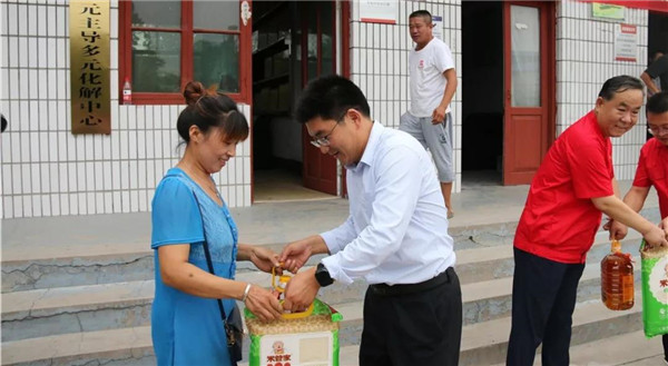 10點(diǎn)鐘,道朗鎮(zhèn)黨委副書記、鎮(zhèn)長李安軍等人與趙恒剛一行與共同為魚東村退伍老黨員和困難群眾送上花生油、大米等慰問品。慰問中,趙恒剛詳細(xì)詢問、了解他們生活中存在的困難和問題,并囑咐他們有困難要告訴公司,以便公司及時(shí)解決他們生活中的難處,現(xiàn)場群眾備受感動。同時(shí),一行人走進(jìn)魚東村困難群眾家中,為他們送去生活必需品和誠摯問候。