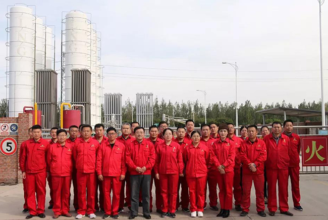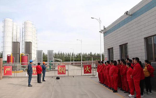 在安泰燃?xì)恻h支部書記佟慶的帶領(lǐng)下,一行人首先來到泰山玻纖總部氣站。駐步氣站前,2017年“氣荒”保衛(wèi)戰(zhàn)的情形浮現(xiàn)在大家眼前:那年跨年夜,安泰燃?xì)馊珕T群收到泰山玻纖黨委委員、副總經(jīng)理、安泰燃?xì)舛麻L(zhǎng)趙恒剛發(fā)來氣站LNG氣化的照片,時(shí)不待我的緊迫感和使命感激發(fā)起每一位“安泰人”安全保供的決心。頂著全國(guó)性氣荒難題的壓力,公司突破重重困難和外界阻力,歷時(shí)半年開通了中石化管道,締造了業(yè)界的“安泰速度”,形成了“雙氣源”供氣新格局。目前安泰燃?xì)夤芫W(wǎng)日供氣能力可達(dá)160萬方,大大提高了氣源供應(yīng)能力,有效解決了冬季氣源供應(yīng)缺口問題,為泰山玻纖安全保供打下堅(jiān)實(shí)的基礎(chǔ)。