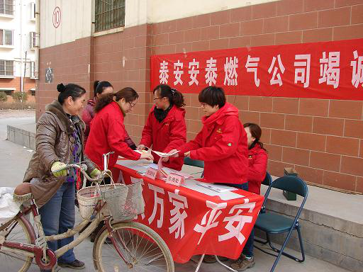 近年來隨著我市城市化進(jìn)程腳步的加快,越來越多的舊村改造房拔地而建,天然氣作為生活能源已走進(jìn)千家萬戶。然而安全用氣的意識和常識都未能達(dá)到廣范的普及和應(yīng)用。自安泰燃?xì)夤境闪⒁詠恚冀K積極組織各種公共場所和居民社區(qū)的燃?xì)獍踩麄髦黝}活動(dòng),并借助這個(gè)平臺向廣大市民群眾大力宣傳、普及有關(guān)天然氣的法律、法規(guī)知識和安全用氣常識,受到了廣大民用戶的廣泛好評。