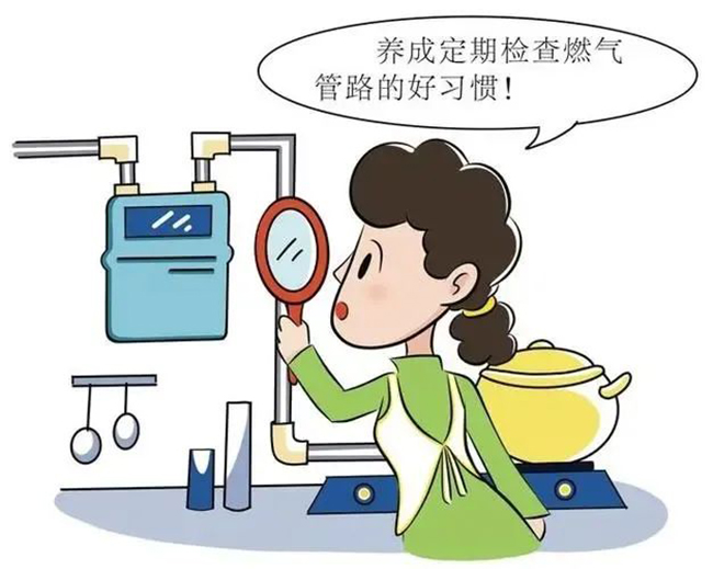 針對家中燃氣設(shè)施,要定期進行自檢,檢查燃氣連接管接頭是否有松動,連接管是否存在老化、損壞現(xiàn)象,如出現(xiàn)以上情況,及時更換燃氣連接管(需更換金屬波紋管),確保日常用氣安全。天然氣本身是一種無色無味的氣體,經(jīng)過加臭處理后,氣體具有臭雞蛋味,一般人可以靠嗅覺識別。如果聞到這類氣味,可使用洗潔精水涂抹管道各接口及連接處進行自檢,如有泡泡連續(xù)冒出,立即開窗通風(fēng),并關(guān)閉表前閥門,不得開關(guān)任何電器,并到室外撥打燃氣公司報警電話。
