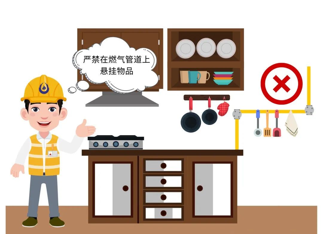 六是在燃?xì)夤芫€上懸掛重物、雜物。
