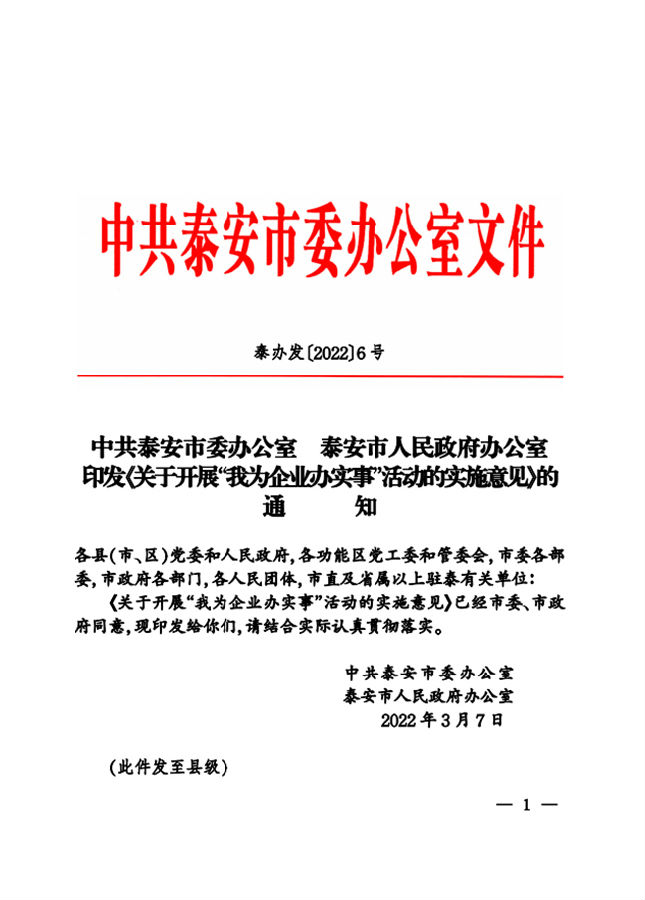 中共泰安市委辦公室泰安市人民政府辦公室印發(fā)關(guān)于開展我為企業(yè)辦實(shí)事活動(dòng)的實(shí)施意見的通 知