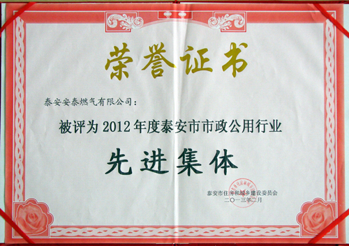2012年度泰安市市政公用行業(yè)先進(jìn)集體