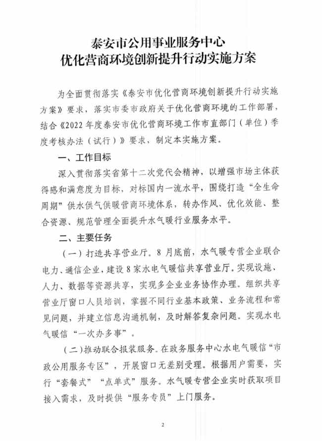關于印發(fā)《泰安市公用事業(yè)服務中心優(yōu)化營商環(huán)境創(chuàng)新提升行動實施方案》的通知