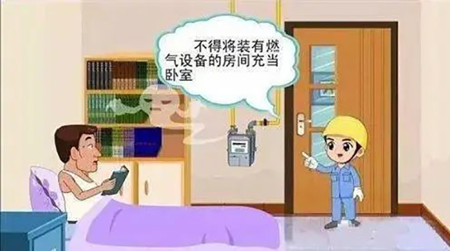 嚴禁將有燃氣設(shè)施的房間充當臥室居住或臨時休息,因為如果燃氣表、燃氣灶或燃氣管損壞泄漏,不易察覺,更有可能引發(fā)爆炸、火災(zāi)等危險。